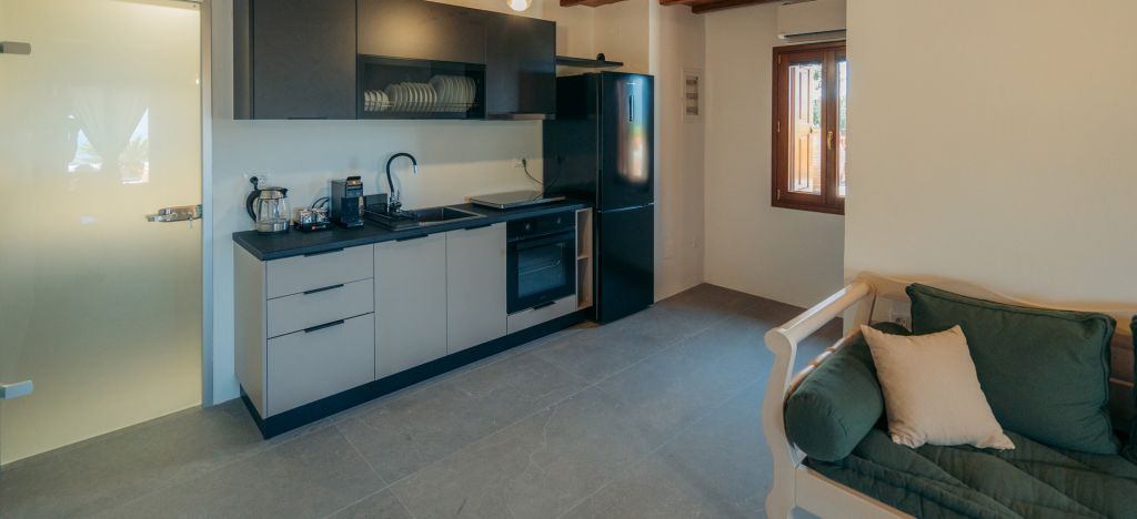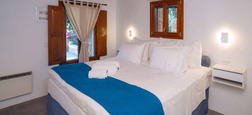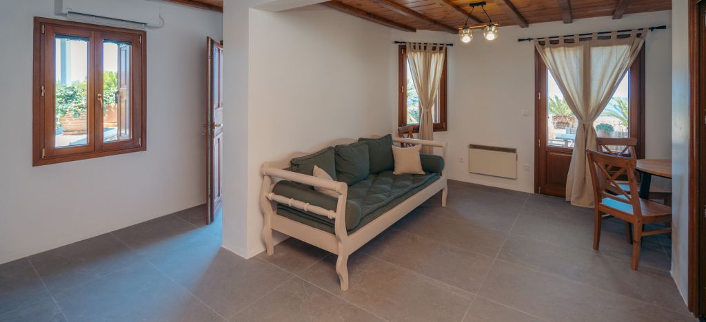 The Deluxe Apartment offers an ample, illuminated space with a rococo-inspired decor. The apartment has a bedroom with a COCO MAT king size bed of 1.80 × 2.20 and a separate open-plan room and a kitchen with all the necessary facilities. The apartment comes with a refrigerator, a Plasma TV, air conditioning, a hairdryer, free WiFi, a free parking space and a veranda with a breathtaking view of the Aegean Sea. It features complimentary toiletries, and daily cleaning services. Deluxe Apartment can accommodate up to 3 people.