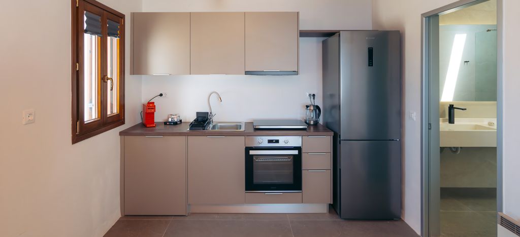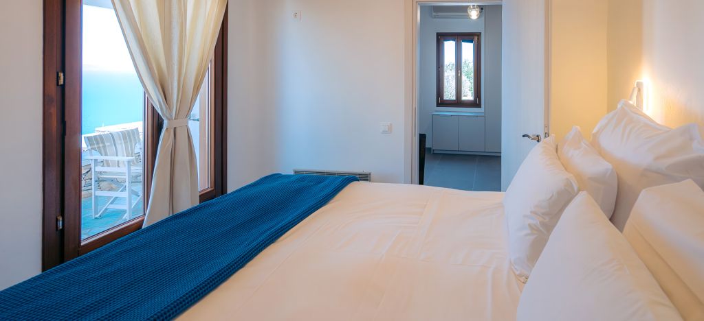 The Superior Apartment, offers an ample, bright accommodation with traditional decoration, wooden ceiling and tile floor. The apartment has a bedroom with a COCO MAT king size bed of 1.80 × 2.20. The apartment provides you with a kitchen and all the necessary facilities, a refrigerator, a Plasma TV, air conditioning, a hairdryer, free WiFi, a free parking space and a veranda with magnificent view of the Aegean Sea. It features a private bathroom, complimentary toiletries, and daily cleaning services. They can accommodate up to 2 people.